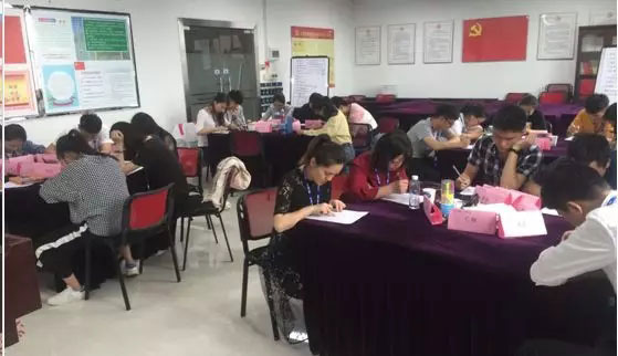 兩天的課程接近尾聲,相信很多理念、觀念、技巧已經潛移默化走進小伙伴的心中,為了檢驗大家的掌握程度,在全部課程結束后,HR組織了閉卷筆試考試,本次依然是85分及格,小伙伴們在非常認真的答題。