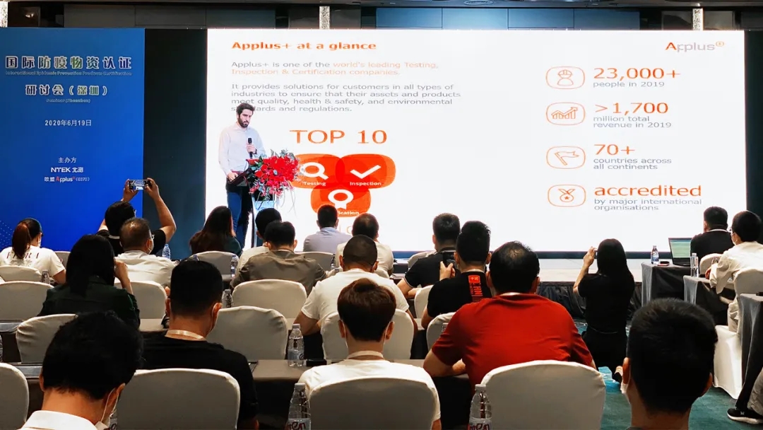 2020年6月19日,由NTEK北測集團聯手歐盟APPLUS(0370)機構舉辦的“國際防疫物資認證研討會”在深圳前海萬豪酒店如期舉行,來自中國和歐洲的多位行業專家、國內眾多相關企業參加了此次研討會。