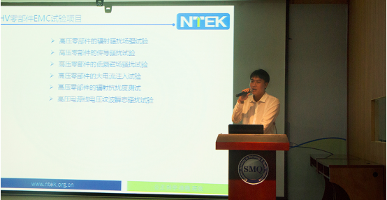 此次高峰論壇會(huì)NTEK汽車(chē)事業(yè)部工程經(jīng)理陳奕旭就“新能源汽車(chē)高壓零部件測(cè)試分析”發(fā)表演講,糾正了企業(yè)在生產(chǎn)時(shí)所犯的錯(cuò)誤并給出建議。同與會(huì)人員分享了我實(shí)驗(yàn)室在電動(dòng)汽車(chē)高壓零部件電磁兼容試驗(yàn)的經(jīng)驗(yàn),并對(duì)該類(lèi)零部件在測(cè)試過(guò)程中出現(xiàn)的超標(biāo)問(wèn)題進(jìn)行了分類(lèi)和解析。