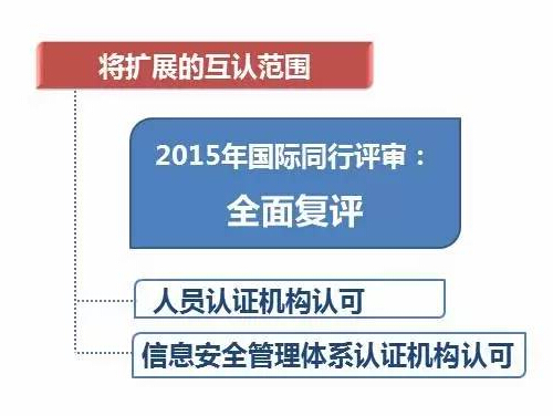 2015年,CNAS接受國際同行評(píng)審對(duì)我們已經(jīng)加入互認(rèn)的認(rèn)可制度的全面復(fù)評(píng)。同時(shí),我們還新申請(qǐng)擴(kuò)展互認(rèn)范圍,包括信息安全管理體系認(rèn)證機(jī)構(gòu)認(rèn)可和人員認(rèn)證機(jī)構(gòu)認(rèn)可兩項(xiàng)認(rèn)可制度。