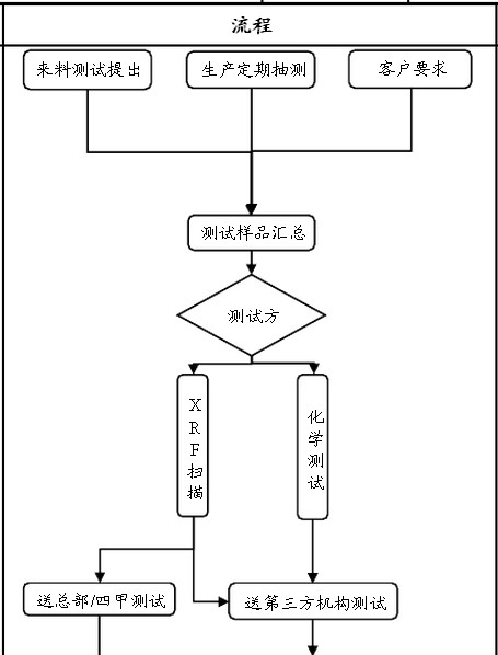 b.掃描測試法+化學分析測試法: 在EUT僅有一少部分有RoHS報告或根本沒有RoHS報告的情況下,而采用的對EUT所有材料進行掃描測試,對測試數(shù)據(jù)較高和已經(jīng)超標的材料再進行化學分析測試法的一種方式;