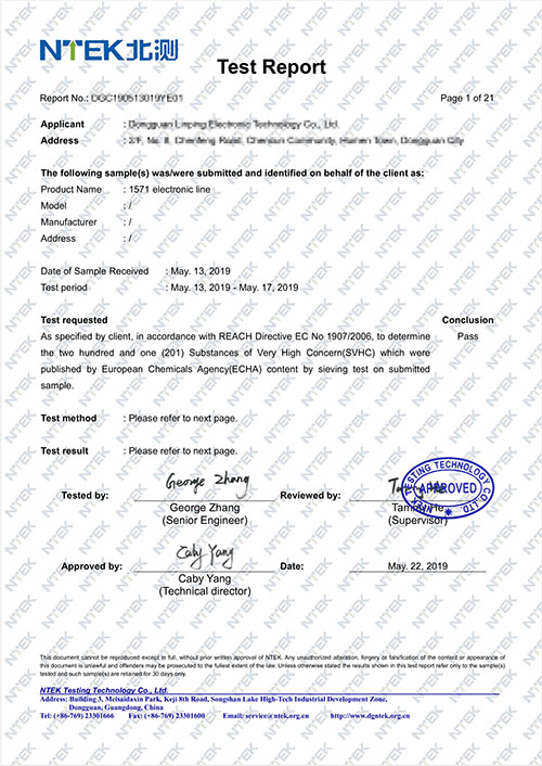 5、測試通過后簽發REACH報告。