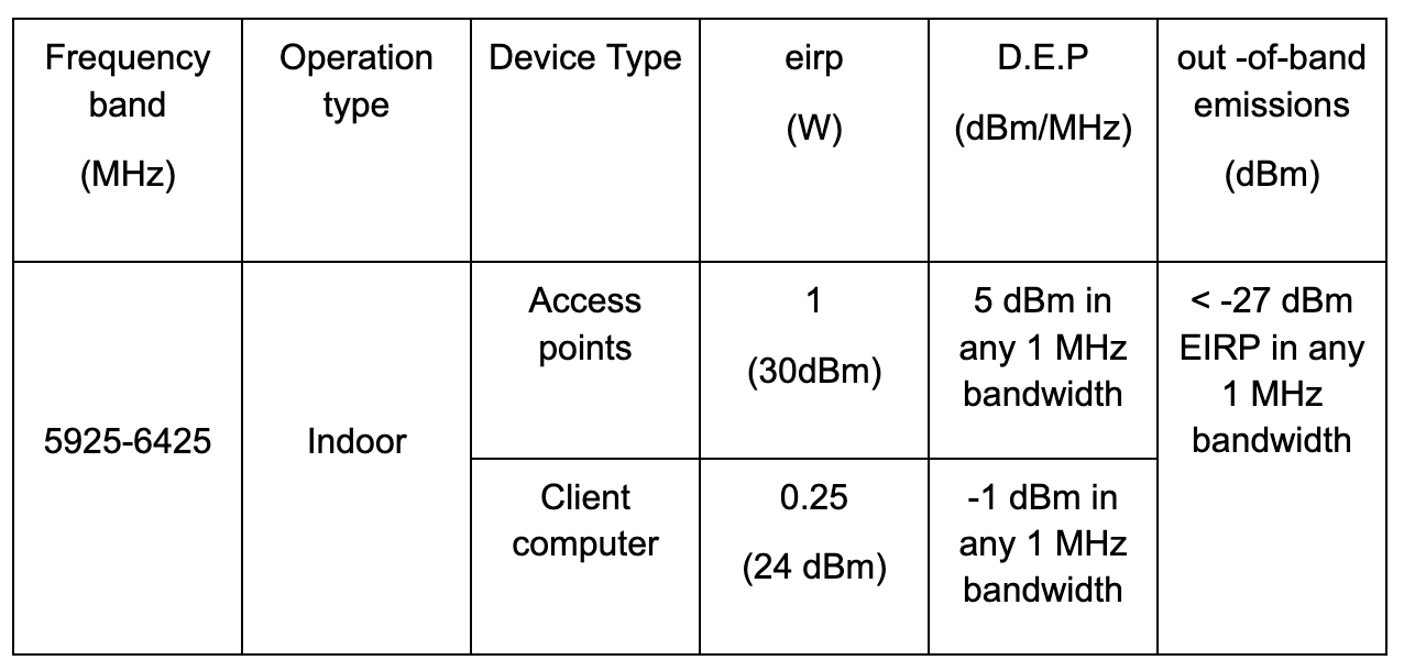 此外,在自由頻譜模式下,在5925-6425MHz頻段運(yùn)行的極低功率WAS/RLAN系統(tǒng)必須遵守以下條件: