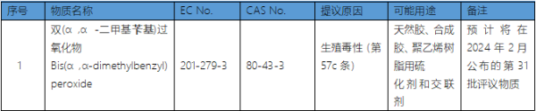 2023 年 10 月 2 日,ECHA再次公布一項新的SVHC 意向物質(zhì),并計劃于2024 年 2 月對該物質(zhì)開展公眾評議,該物質(zhì)具體信息如下: